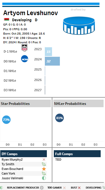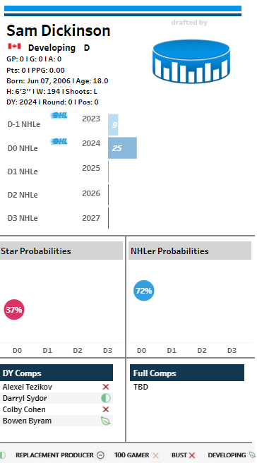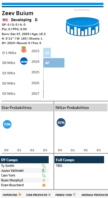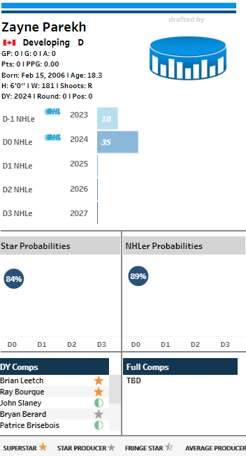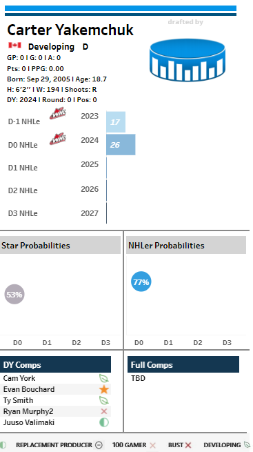 “Assuming Levshunov is going to be gone, if the Senators are targeting a defenceman I would focus my attention on Zayne Parekh, Zeev Buium, Sam Dickinson or Carter Yakemchuk (Cole Hutson too but there's no way he's going to be taken that early). They profile very well in the model, which is indicative of a future star offensive defenceman. Parekh and Buium specifically put up record-breaking, outlier-type, numbers in their respective leagues this year.”